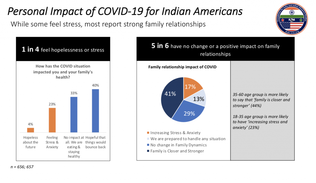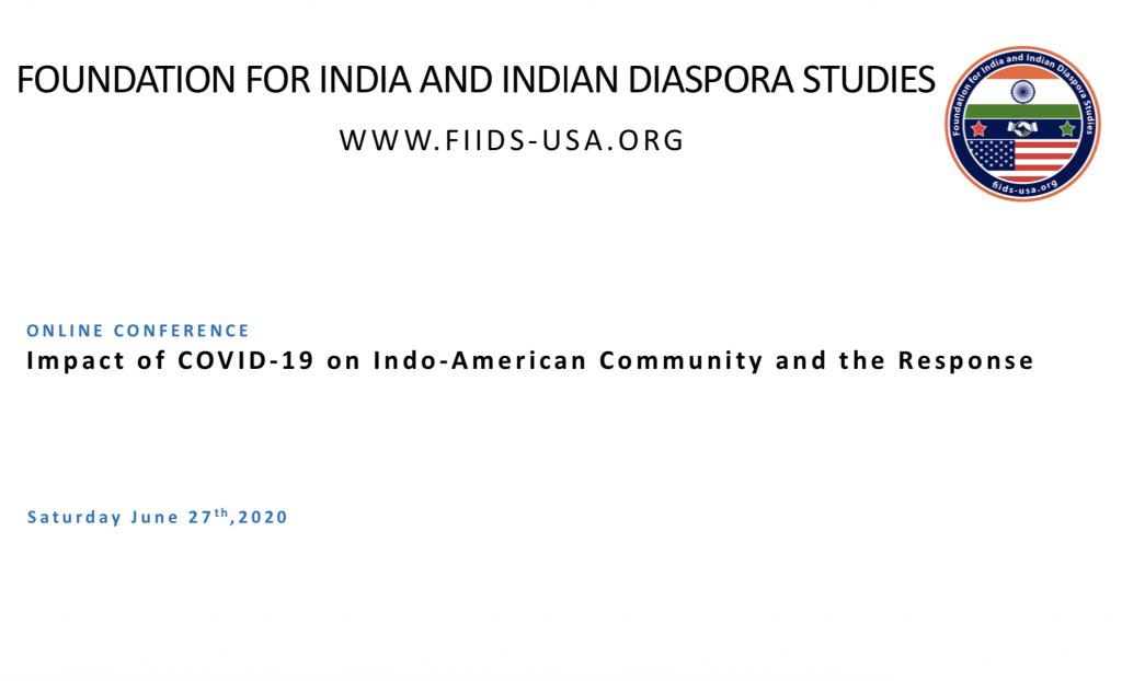 The Foundation for India and Indian Diaspora Studies(FIIDS) conducted a survey of Impact of Covid-19 on Indo-Americans and the Community Response. This survey was conducted via email and phone calls in the US states where a large number of Indo Americans reside.